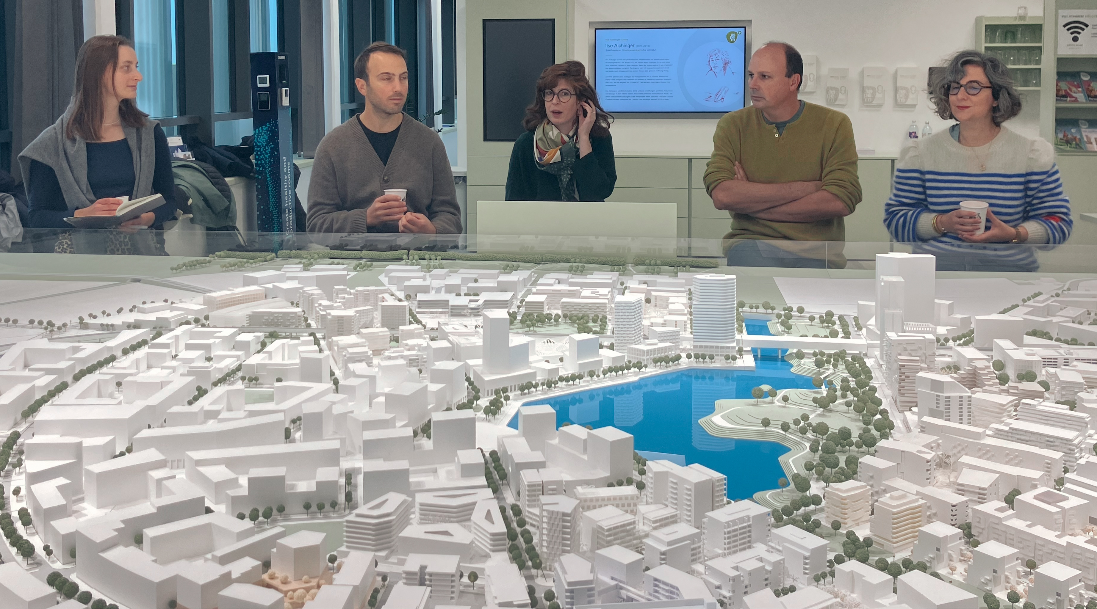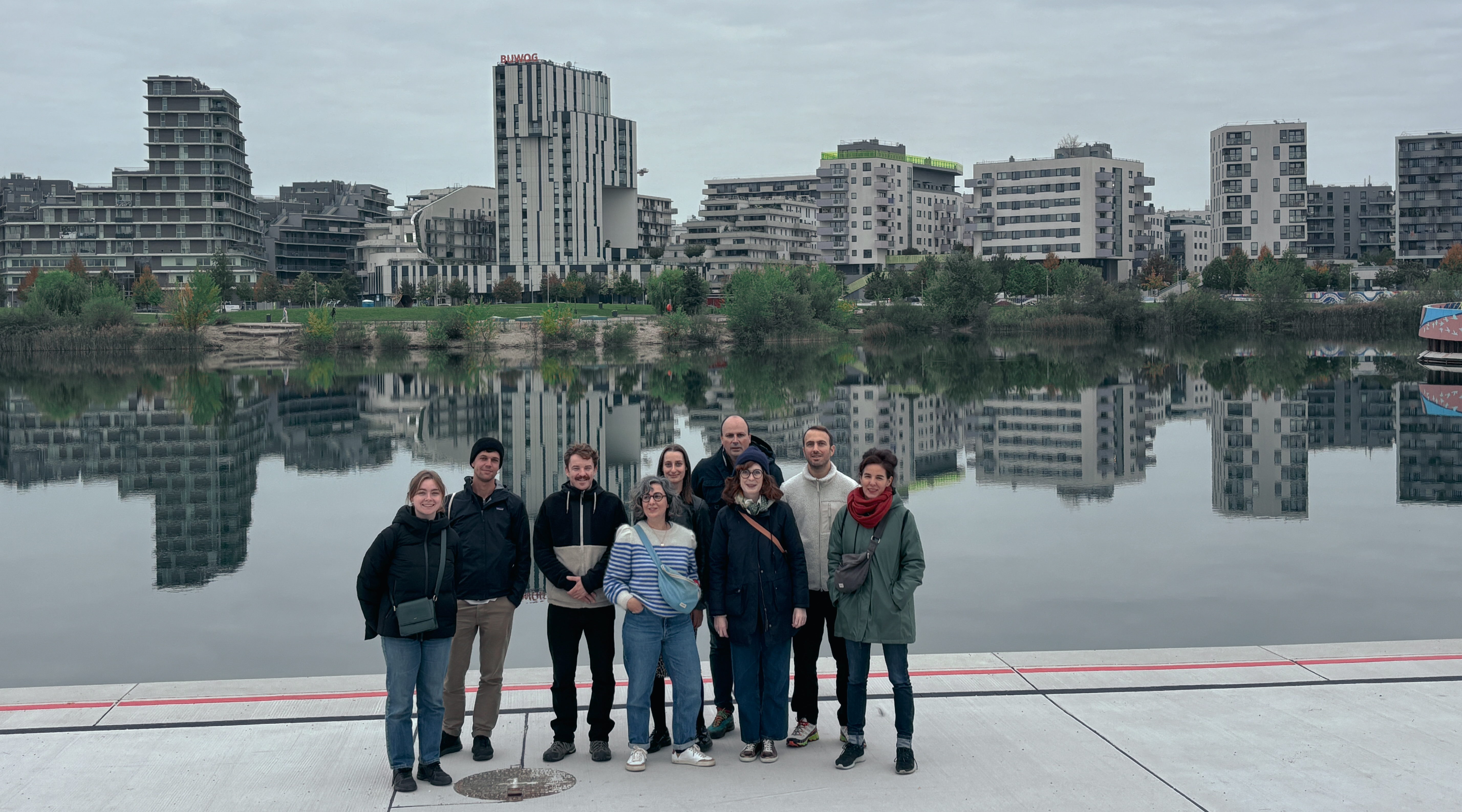Le voyage se termine par la visite d’un quartier encore plus récent. Aspern Seestadt, qu’on pourrait presque qualifier de ville nouvelle étant donnée l’échelle de cette opération de 240 ha qui émerge autour d’un lac. Situé en périphérie à l’emplacement d’un ancien aéroport, son foncier entièrement maîtrisé par le secteur public a facilité le montage. Une liaison en métro permet d’atteindre le centre ville en moins de 30 minutes. À terme, 30 000 habitant·es vivront dans ce lieu planifié selon le principe de la ville du quart d’heure.