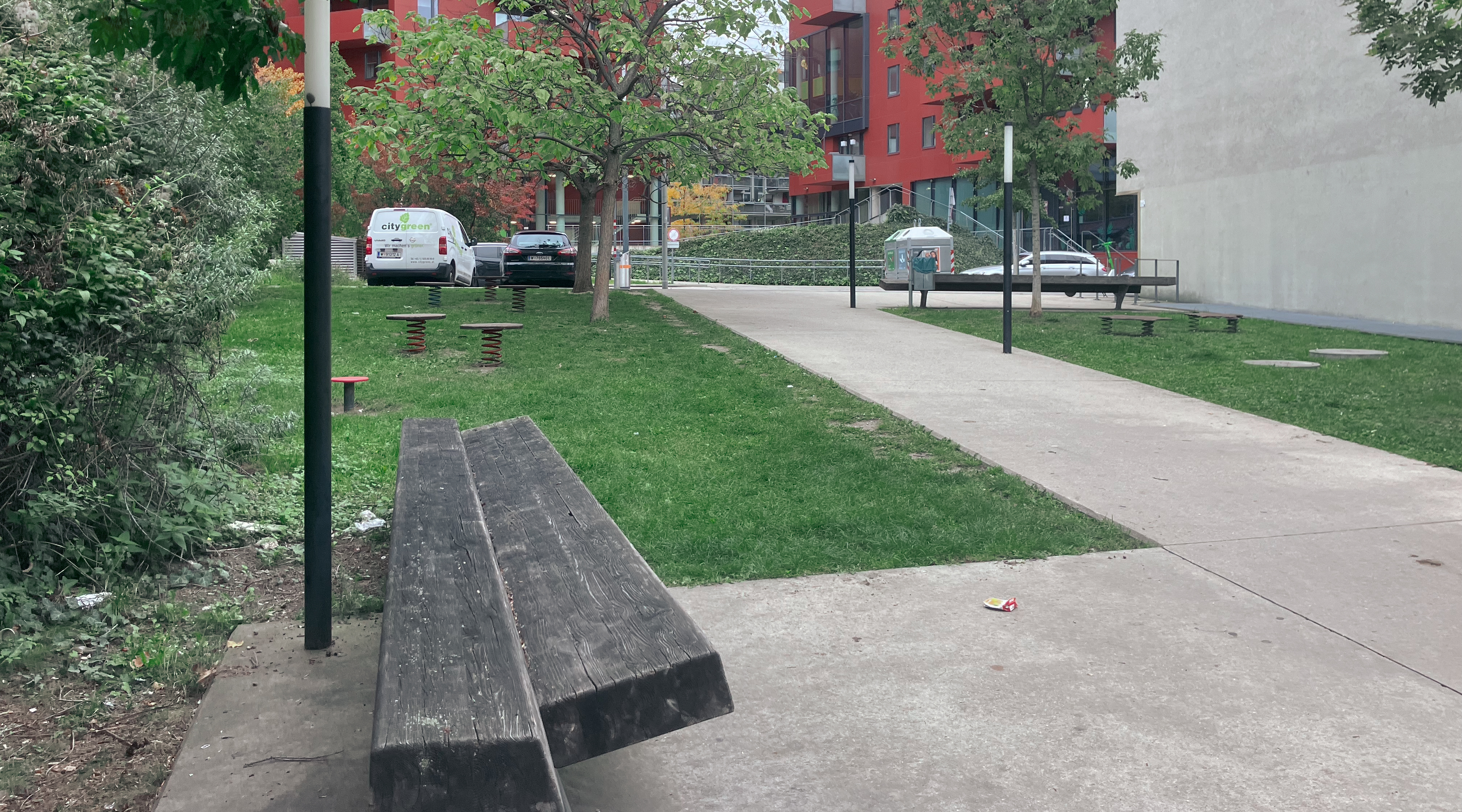 Les espaces publics, ouverts et accessibles, ont aussi été pensés dans cette optique. Ainsi, le football y est souvent interdit et le mobilier urbain est conçu pour que les adolescentes se sentent à l’aise. Par exemple, un grand hamac plutôt qu’un terrain de sport, ou bien des petites plateformes permettant de manger et boire ensemble sans aller au café, souvent trop cher. Pour les plus petits, de nombreux points de repos ludiques sont installés le long des voies de circulation permettant aux enfants et aux parents de faire des pauses sur le chemin de l’école. Les seniors aussi sont inclus puisqu’il existe un programme d’habitats partagés réservés aux femmes de plus de 50 ans qui répond à une vraie demande, dans la mesure où il intéresse tout type de profils. Au niveau des commerces, des « village houses » constitués de très petites cellules (environ 30 m2) attribuées par un jury permettent, grâce à des loyers accessibles, de varier la typologie.